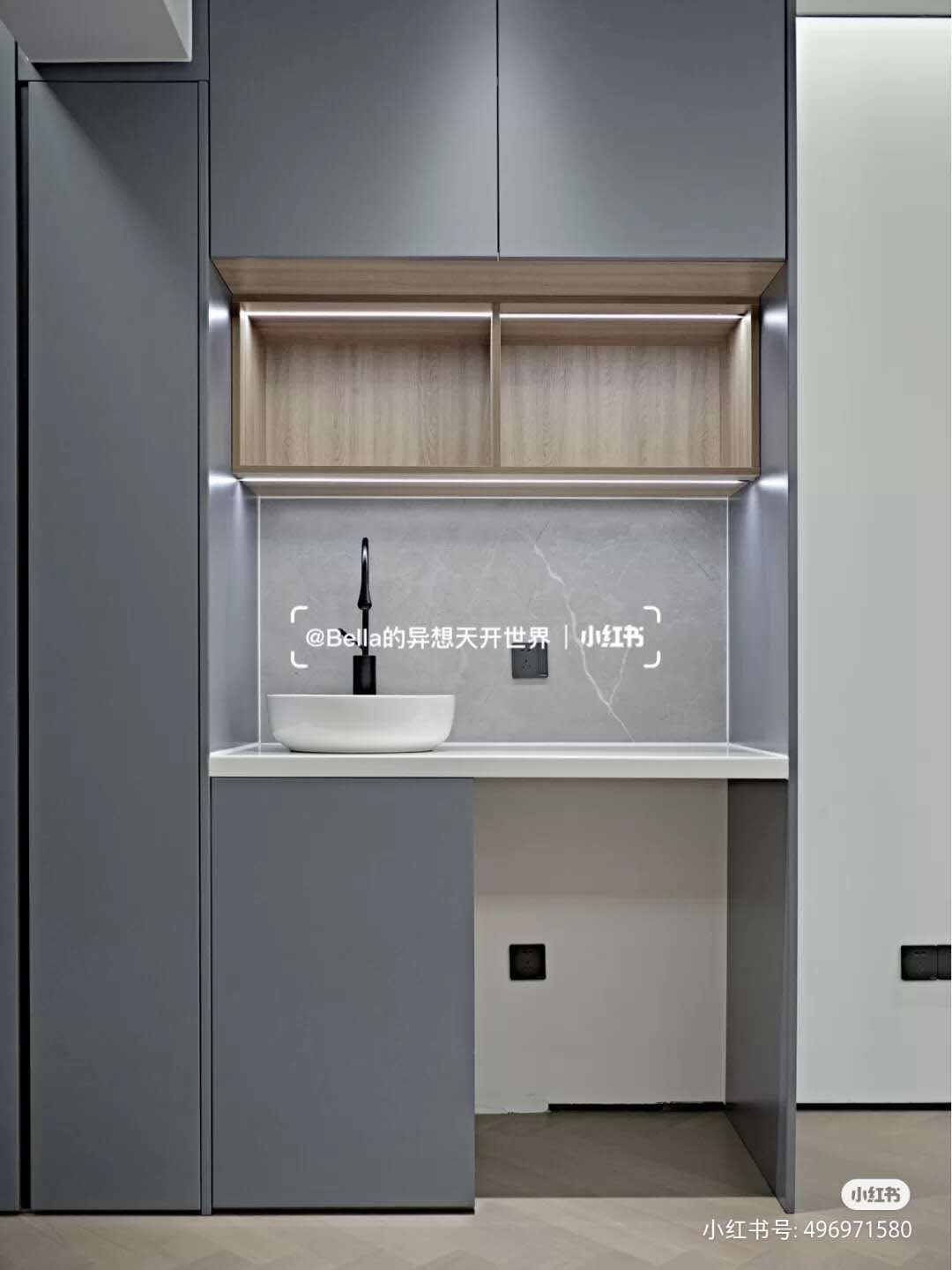 4.在卫生间和厨房的处理上,卫生间如果需要满足多人同时使用,并且达到一个舒适的动线和一个优化后的生活习惯,可以进行卫生间三分离或者四分离设计(图中未考虑管道情况,具体设计需要根据房屋结构进行设计),厨房的处理上也可以利用阳台空间进行中厨设计,并且利用外部空间最大化利用空间,增加整体收纳,同时可以进行壁柜和电器高柜的处理。