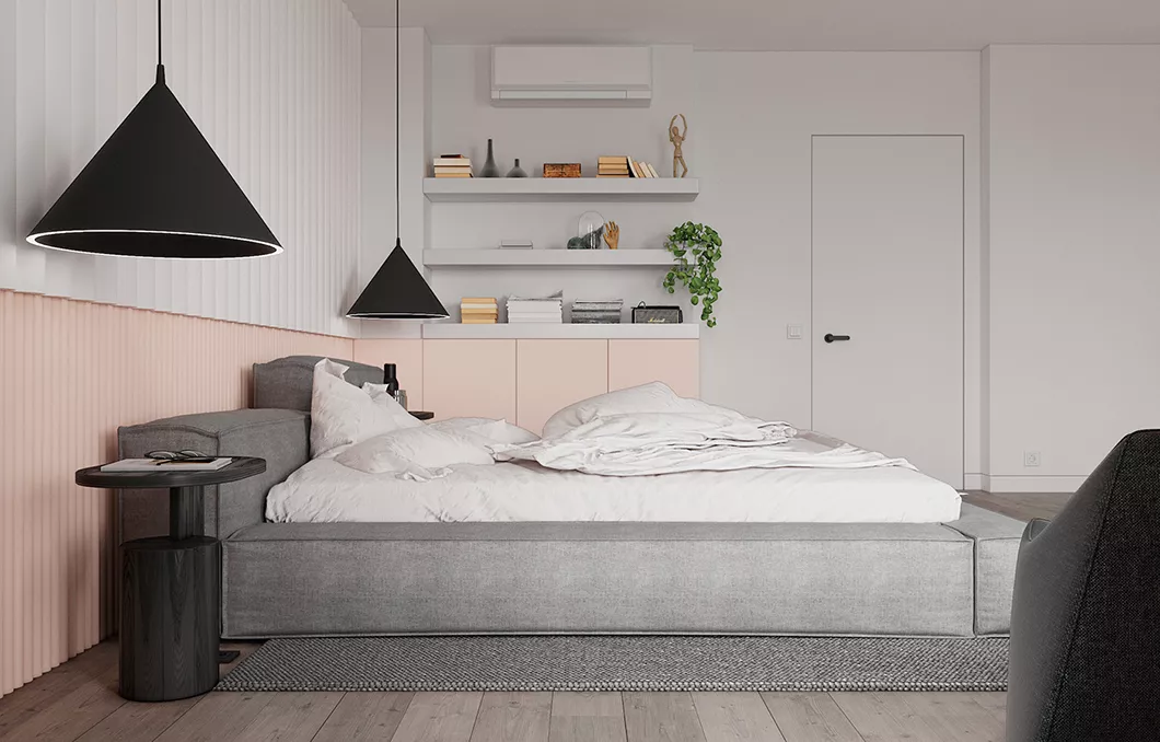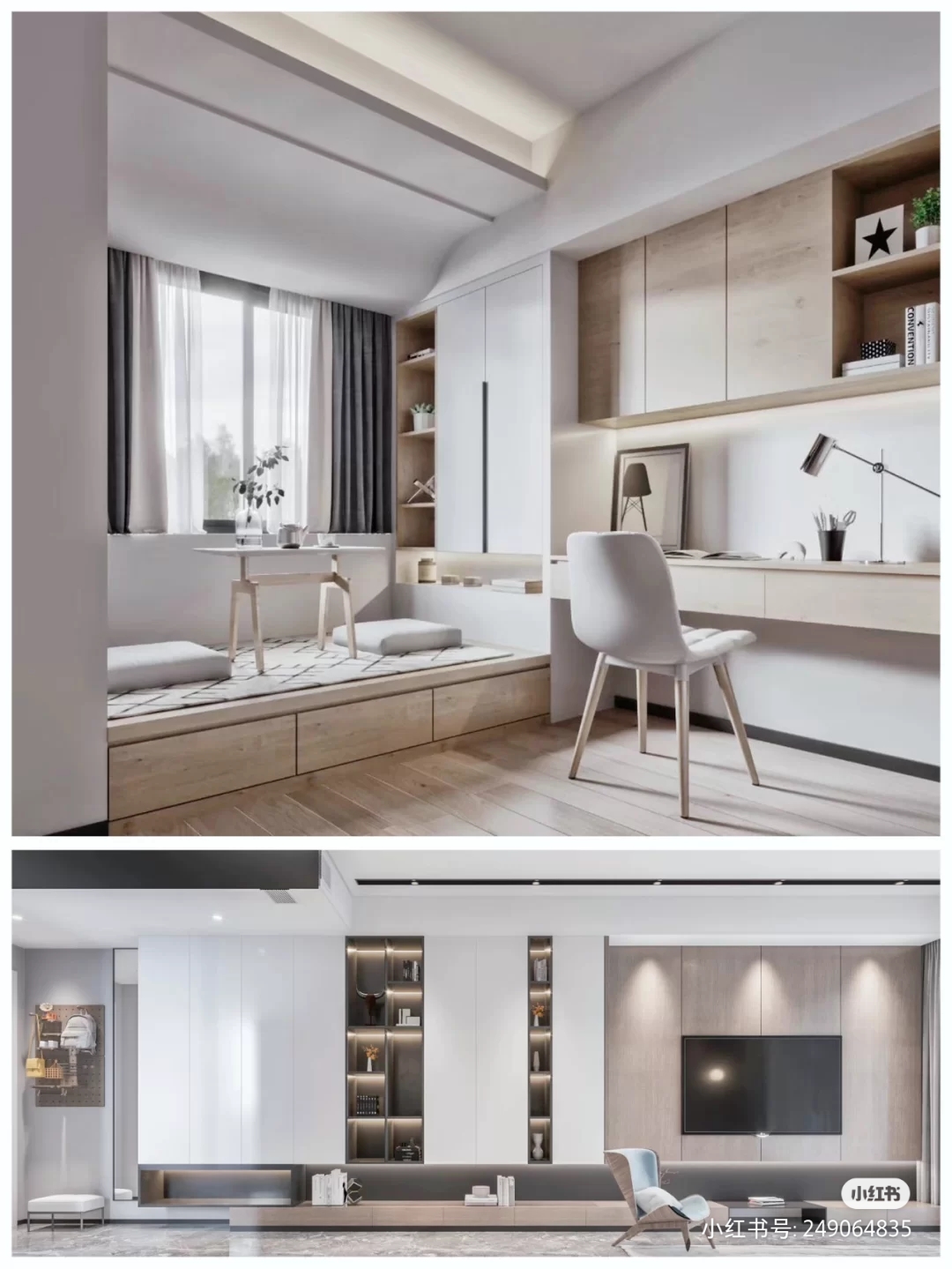 空间对称因此在储物的处理上就需要下功夫进行处理,既要满足视觉的整齐性同样需要满足全屋的储物需求。