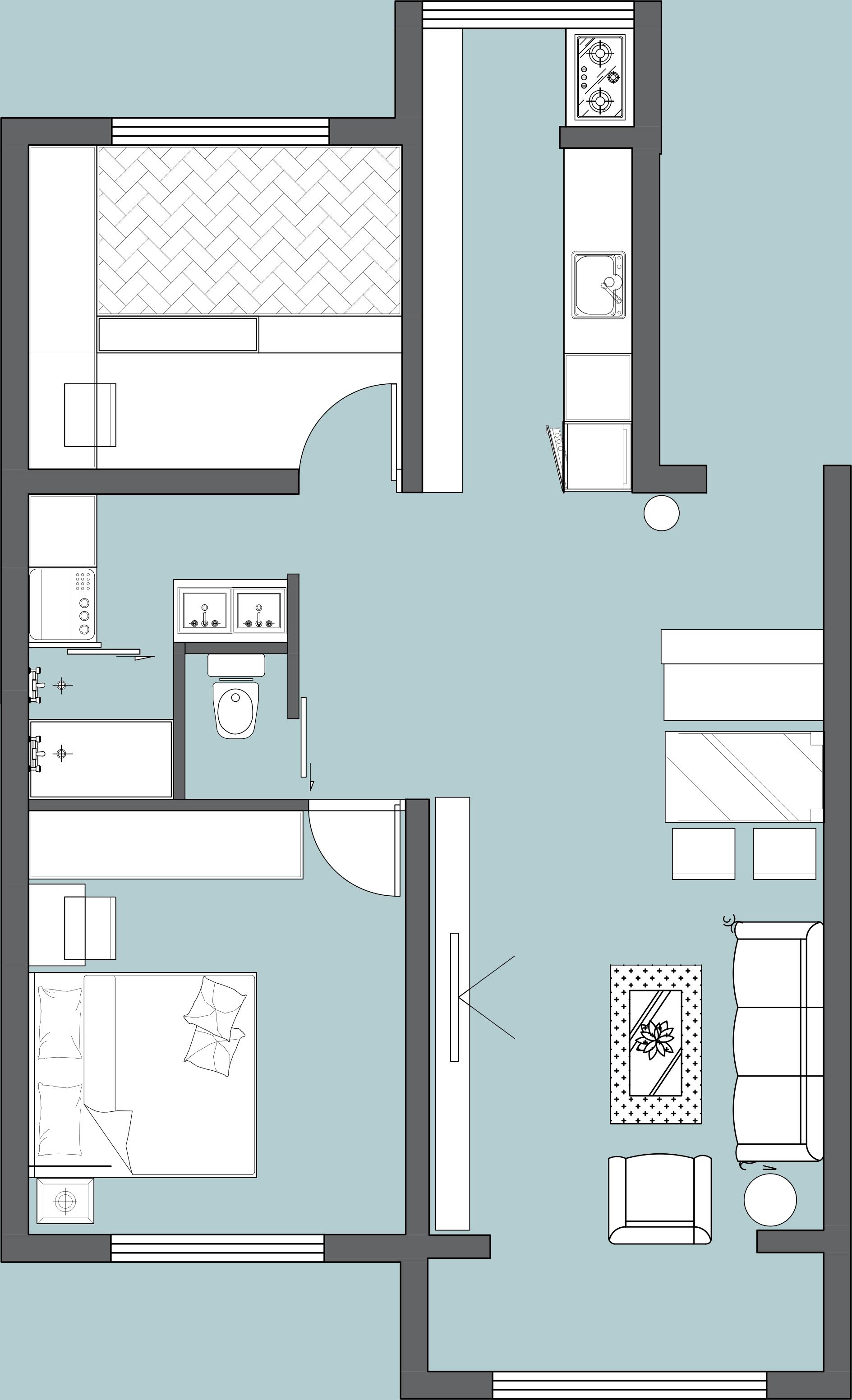 3.将原始户型的沙发以及电视背景墙互换,可以得到一个非常完场的电视背景墙;同时也可以利用屏风弱化的功能隐藏沙发区的凌乱(一般入住时间较长后沙发区零食和衣物比较多)。这样在进门后的视线上始终可以保证一个完整、整洁的画面。