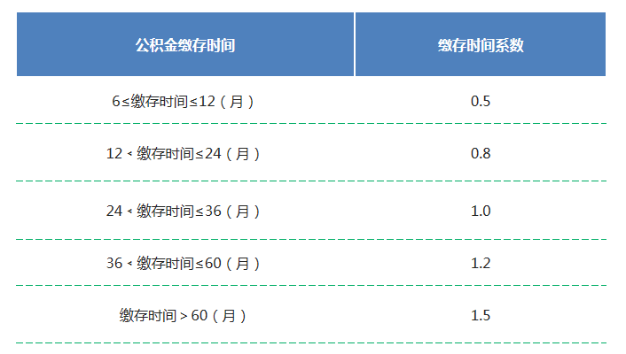 公式2:贷款额度=(借款人公积金缴存余额+配偶公积金缴存余额)×20倍×借款人公积金缴存时间系数。