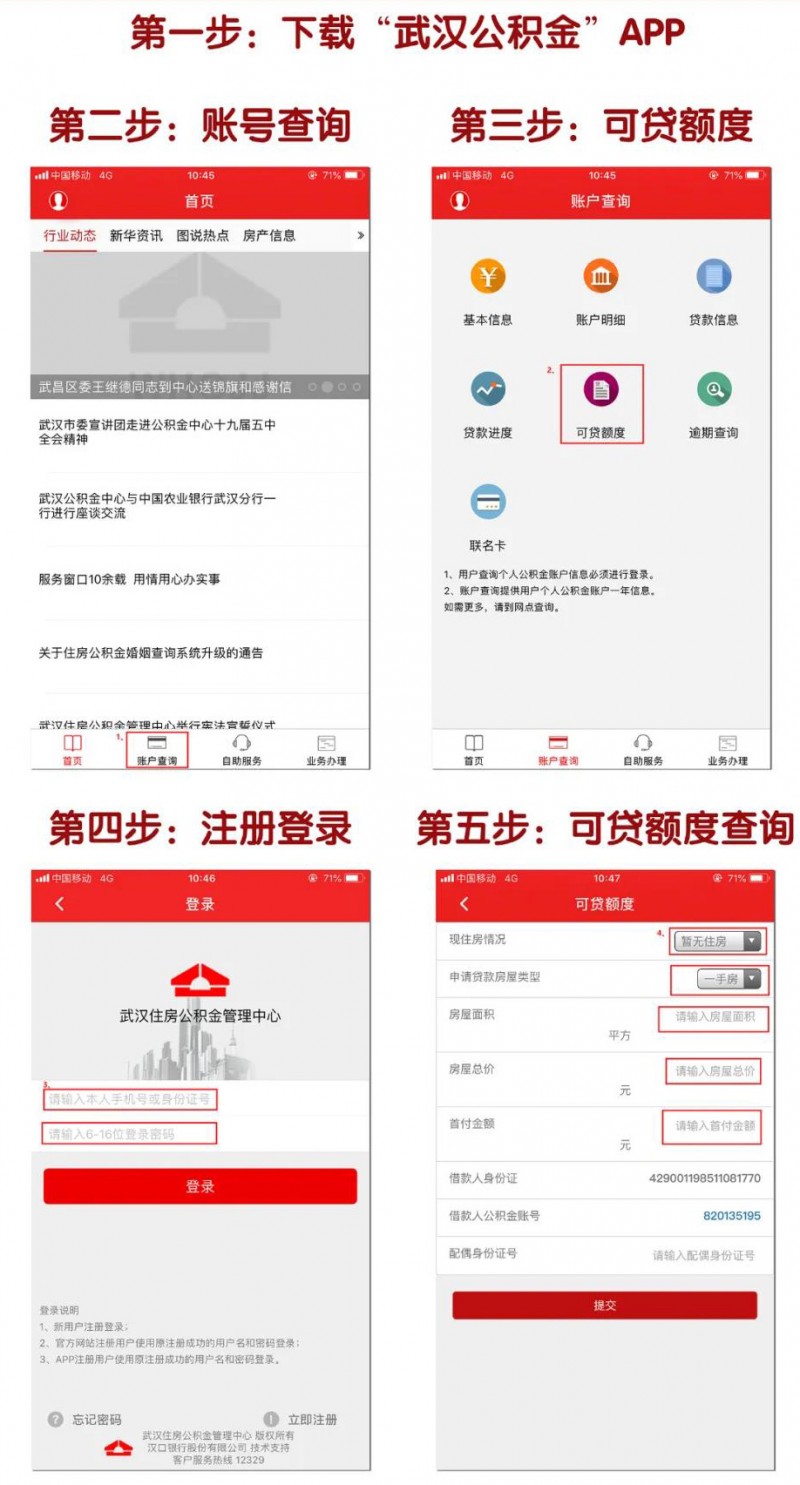 方式二、下载武汉公积金APP→账号查询→可贷额度→注册登陆→可贷额度查询