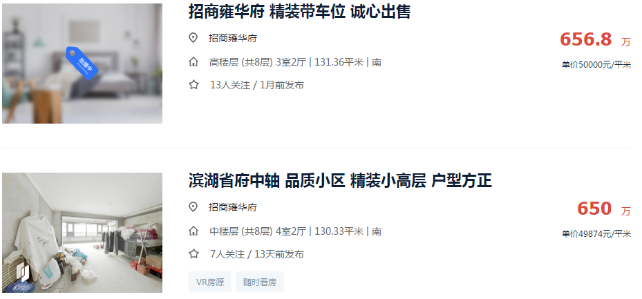 与地块仅一路之隔的招商雍华府二手房挂价最高已达5万/㎡。