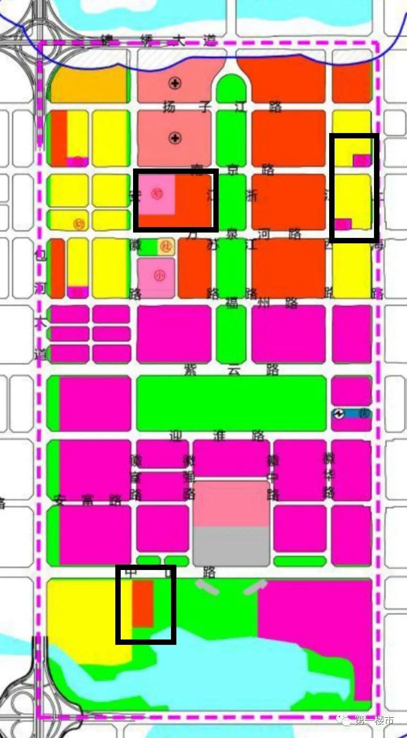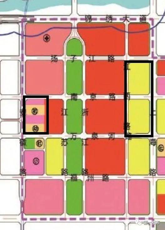 安徽路与南京路交口东南角地块,原本的教育用地、商业用地面积扩大;