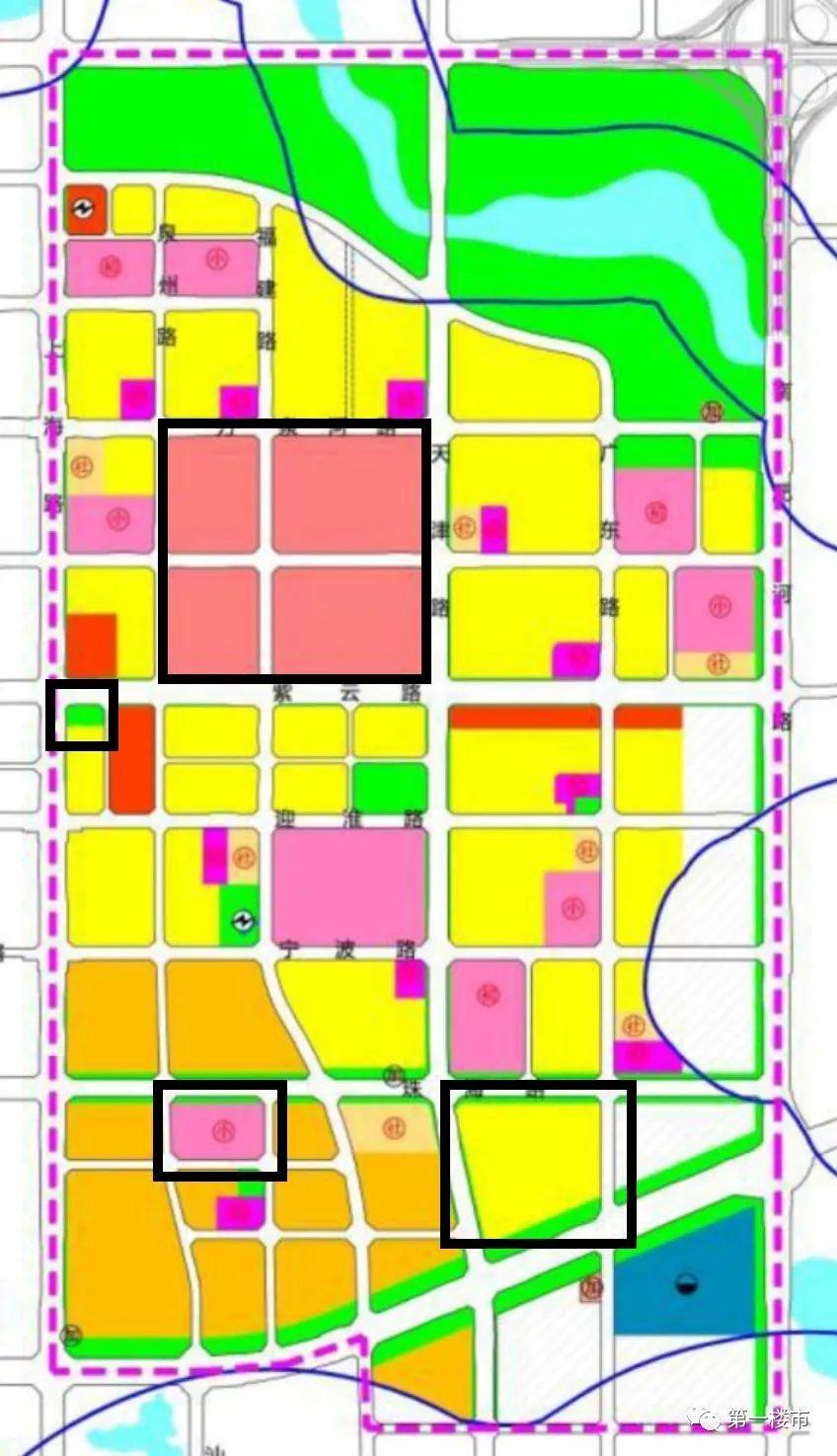 1、对比旧规划,变更后的规划,浅黄色的住宅地块明显大量减少,基本集中在珠江路南规划片区的西北角,值得一提的是,这些住宅地块中已有部分已经开工。