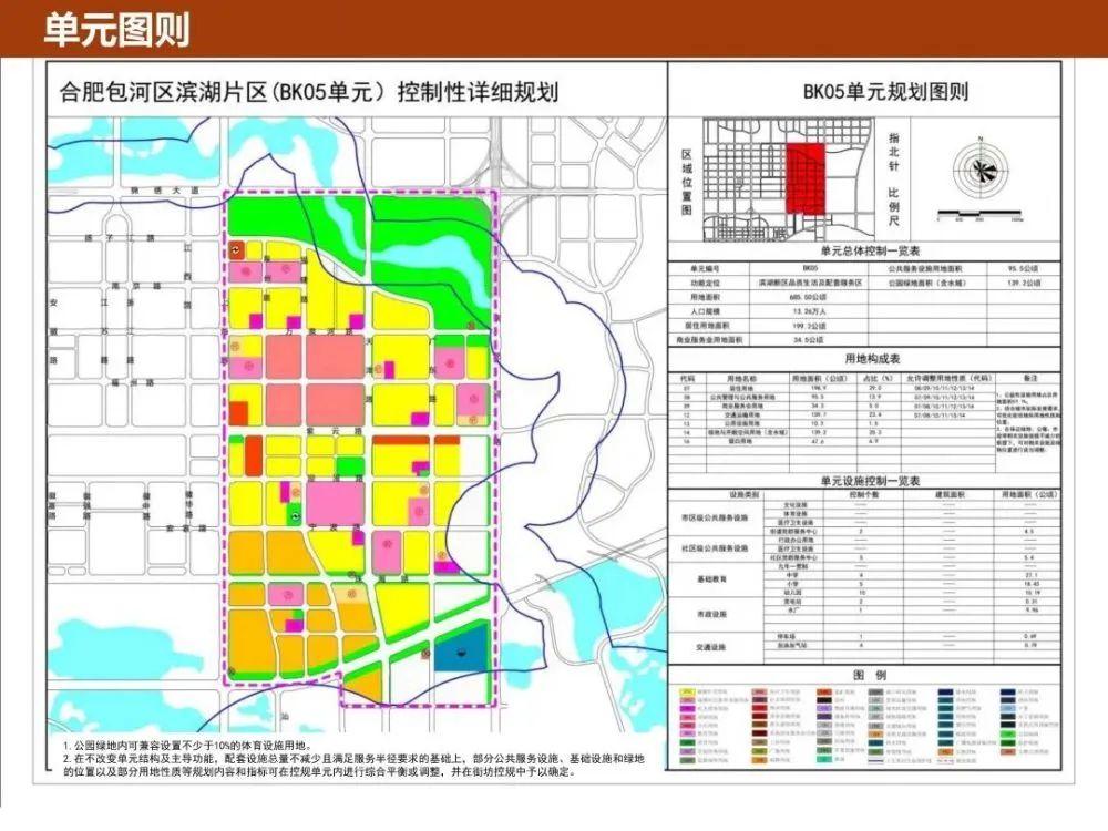 定位为滨湖新区品质生活及配套服务区,就也是省府东板块,居住用地面积199.2公顷(2988 亩),商业服务34.3公顷(514.5亩),人口规模13.26万人,从规划图来看,中学4所,小学5所,幼儿园10所。