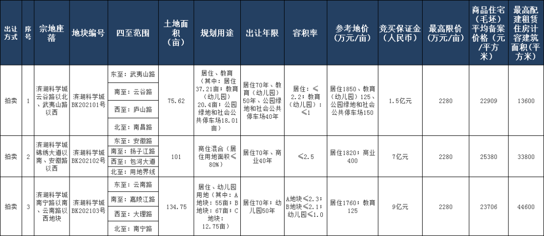 滨湖科学城BK202103号地块位于南宁路以南、云南路以西,地处金融板块,面积约134.75亩,其中居住A地块55亩、B地块67亩,幼儿园12.75亩,住宅A地块容积率≤2.3、B地块容积率≤2.1。