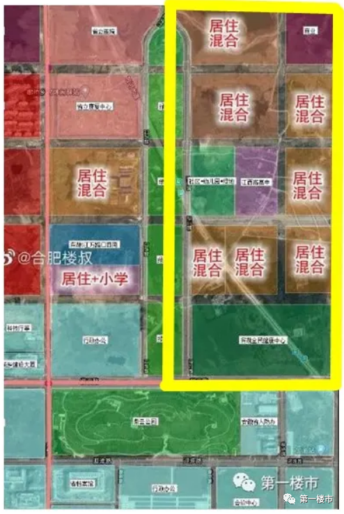 2、紫色地块代表教育科研用地,是原规划没有变更后新增的地块,而且分布比较集中,占地量不小,据合肥高楼迷博文信息,将建设安徽科技大市场科技成果转移转化基地,详细内容后面再述。