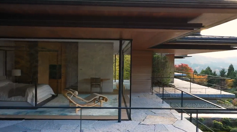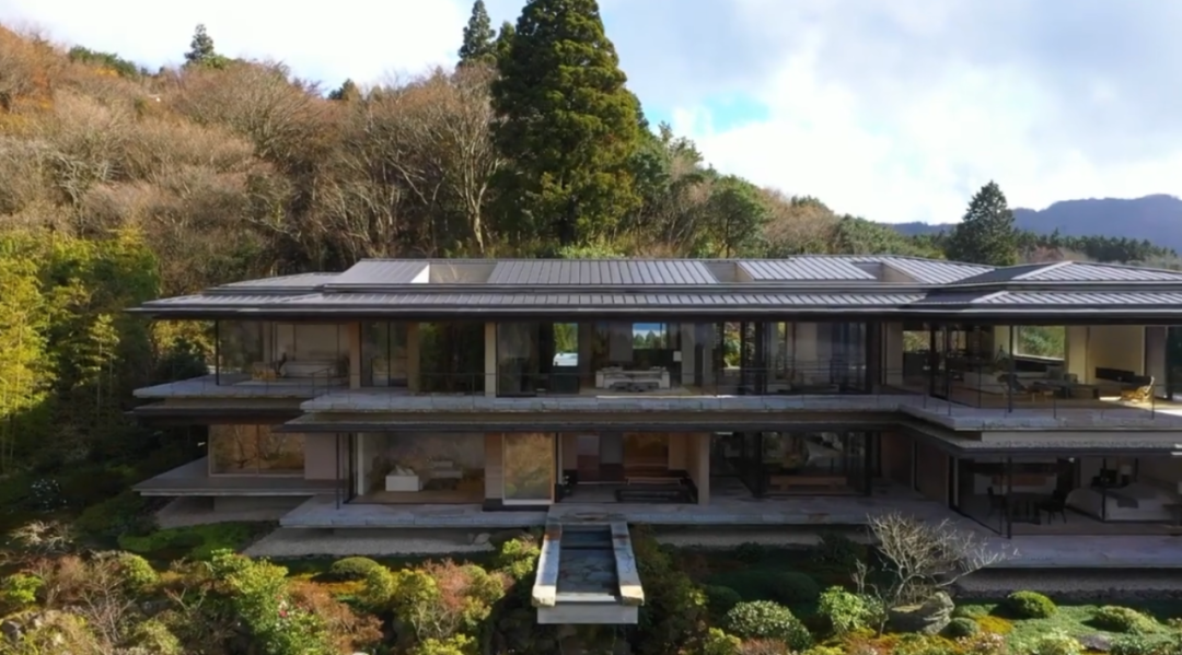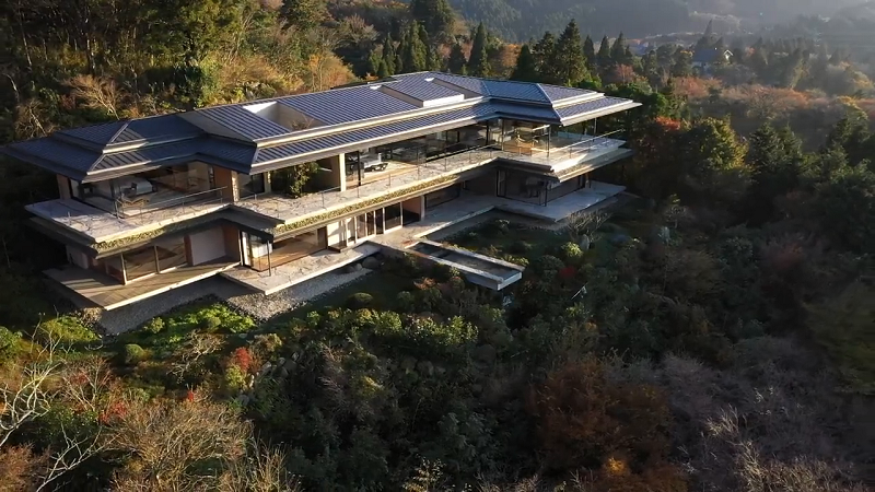 日本箱根,距离东京只有不到 2 小时车程,由设计师 Kidosaki设计,他亲自挑选了这块山中空地,之所以选这块地,是因为他认为在这个位置居住,可饱览富士山和芦之湖的美景。
