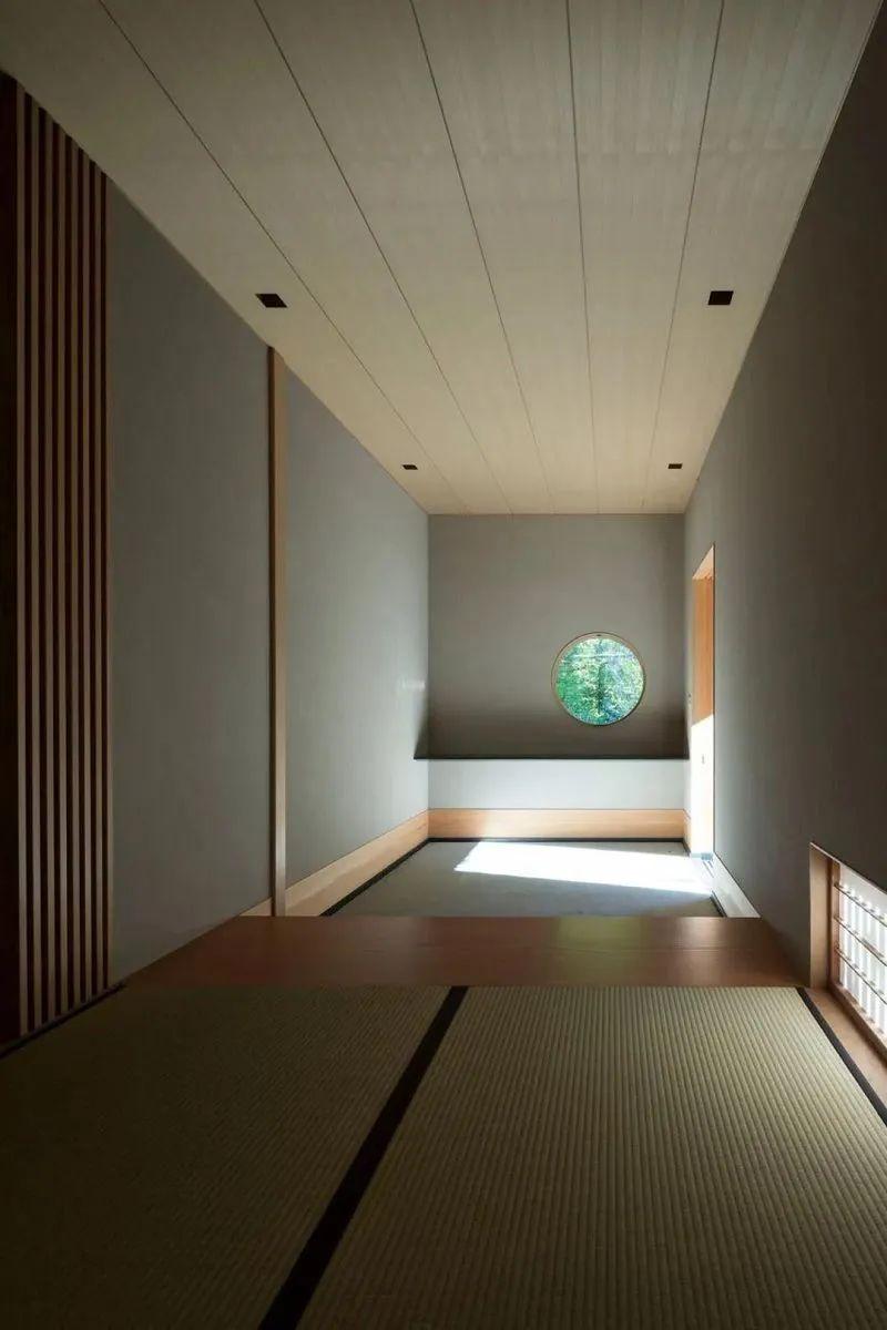 简约的和室里圆形的窗户透露出一点禅意,与整个建筑的风格十分搭配,也算是一个设计的小细节。![]()