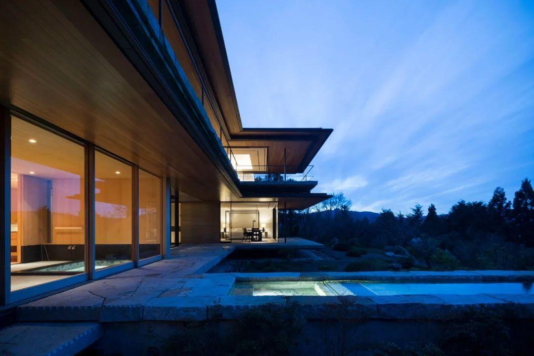 天空の別邸 这栋别墅坐落在日本箱根的一处山丘的半山腰上,占地1896.50㎡,树木环绕,位置优越,由日本事务所 Kidosaki Architects Studio ,历时5年才完工。
