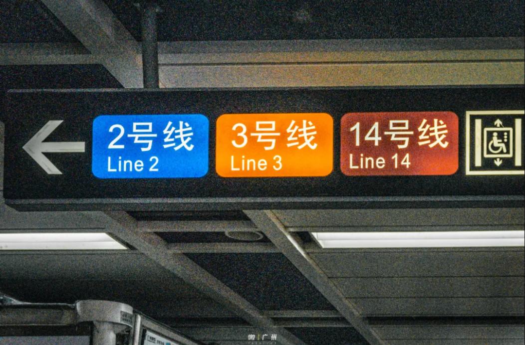 2号线,跨越白云、越秀、海珠、番禺四区,途径广州南站和广州火车站;