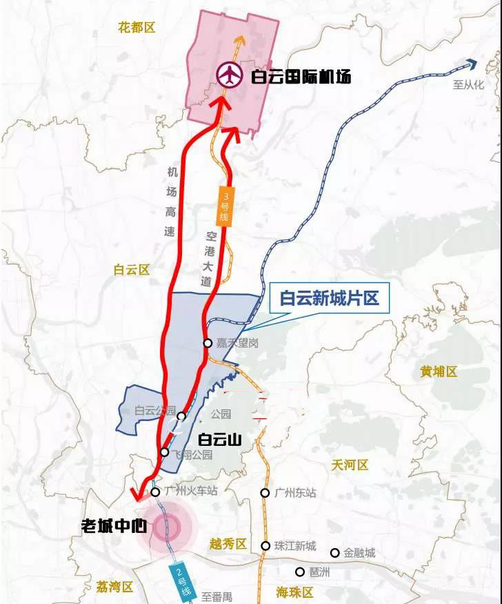 众所周知,自从旧机场腾挪后,白云新城近十年一直是白云区的发展重点,对标珠江新城、琶洲会展CBD,值得一提的是,白云新城紧靠白云山,和珠江新城CBD相隔仅不到5公里。