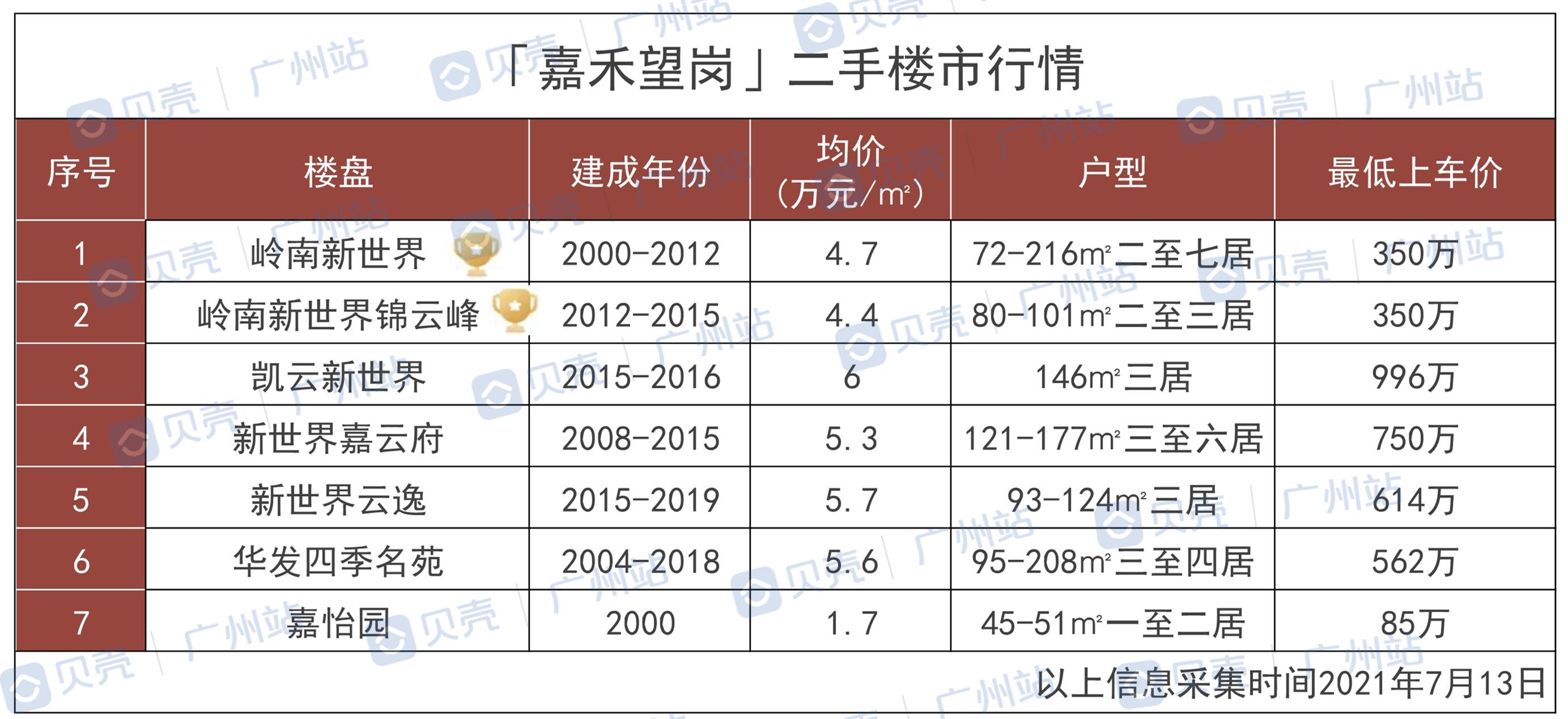 岭南新世界目前挂牌均价为4.7万/㎡,在售户型为72平-216平的二房至七房单位。最低上车价350万。