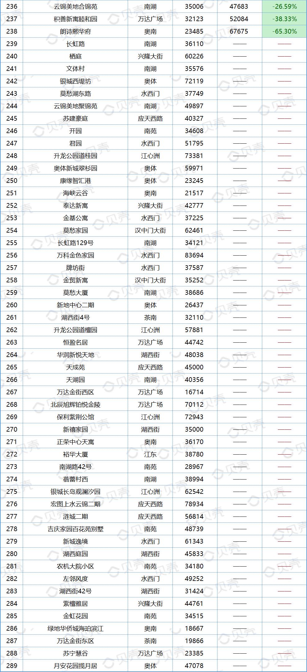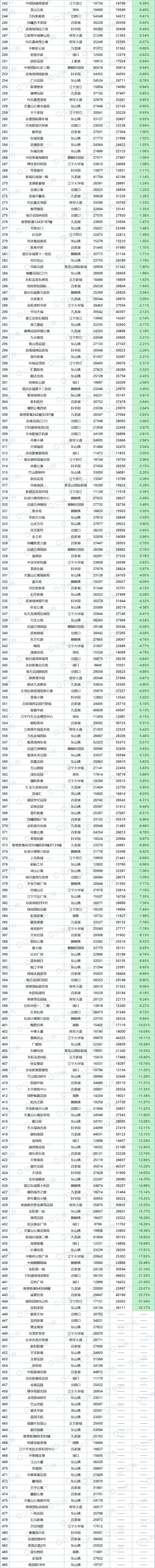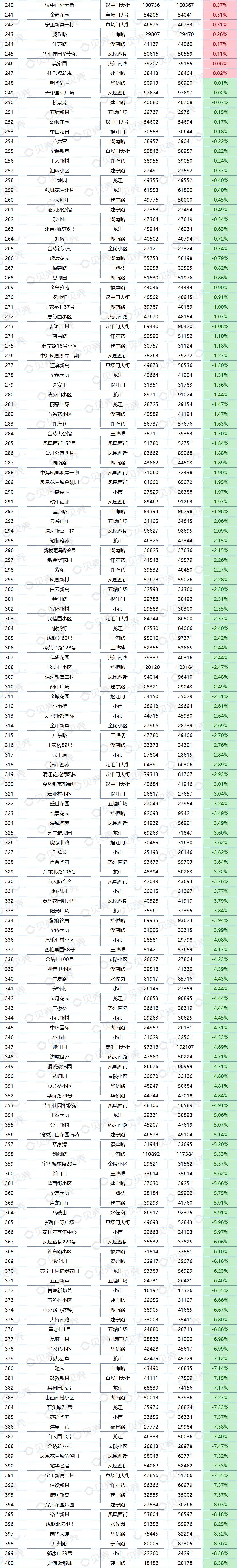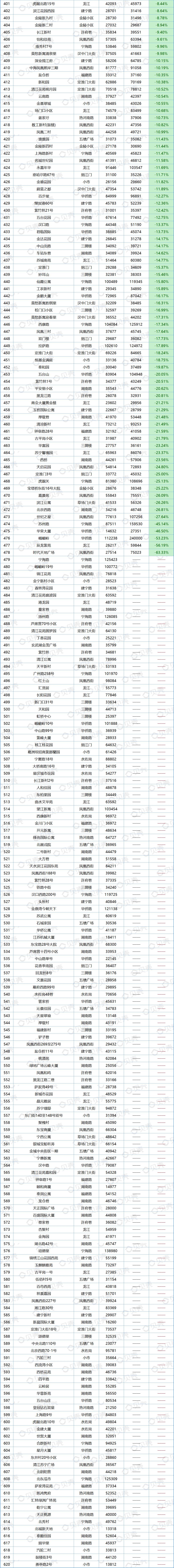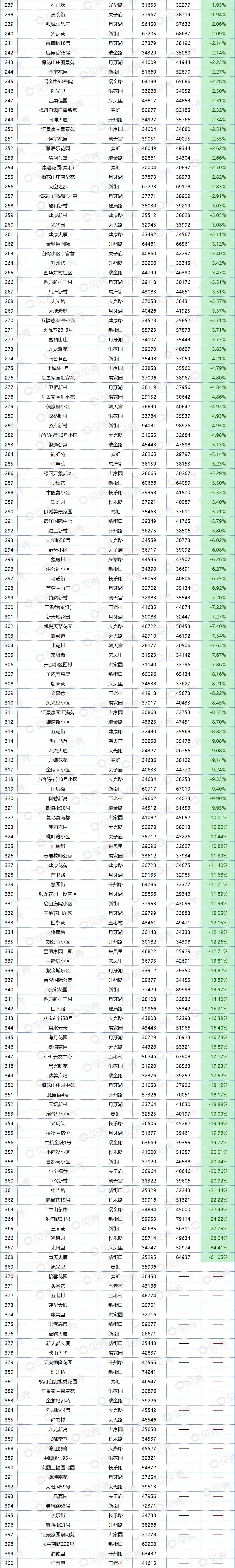 数据显示,7月南京共1432个小区挂牌价格上涨,占比42%;1291个小区挂牌价格下跌,占比37.87%。(另有686个小区6月挂牌价不足,未统计涨跌幅度)