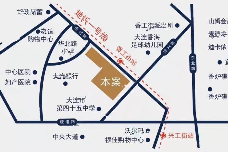 项目的名称叫做御东联,开发商是大连新河房屋开发有限公司,是本土开发商,项目的地址是沙河口区华北路香工街地铁站旁(c口出口即是)