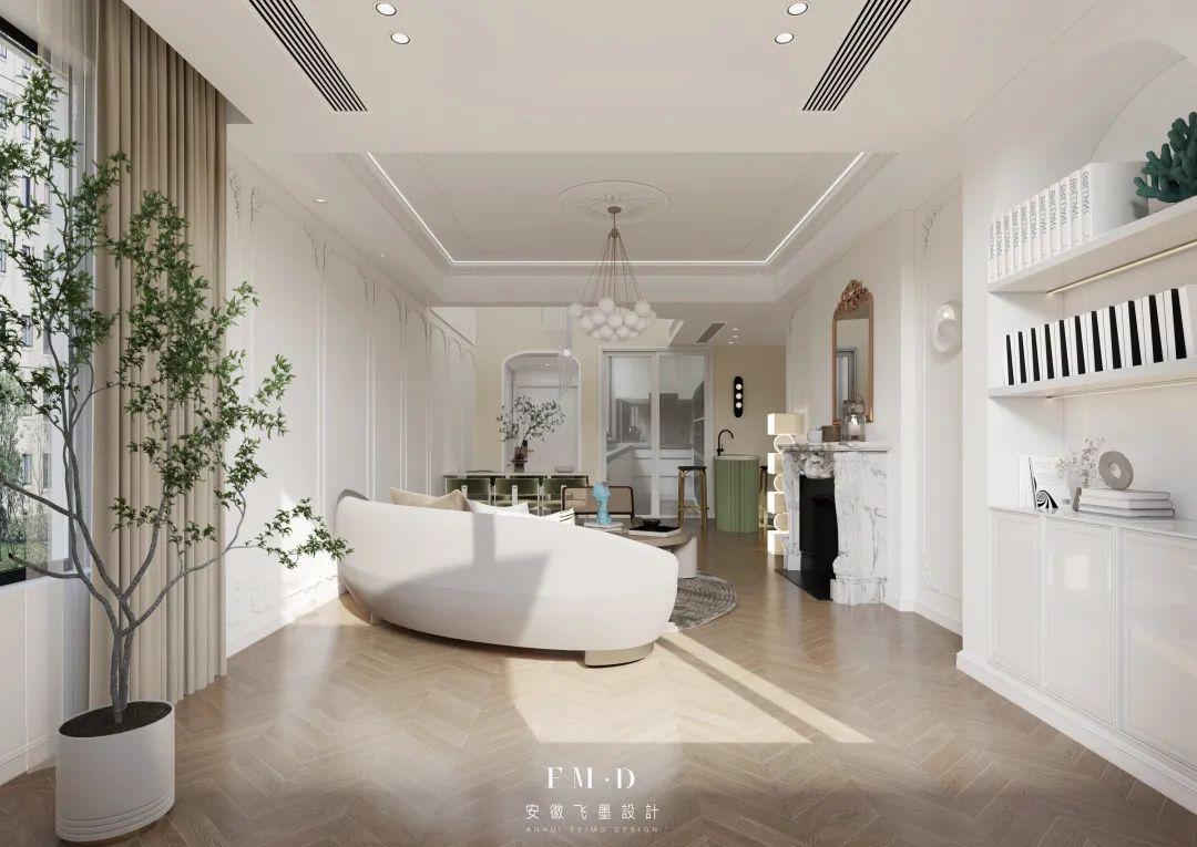 ① 有中央空调,加上轻奢法式风,所以结合石膏线做了局部边吊。