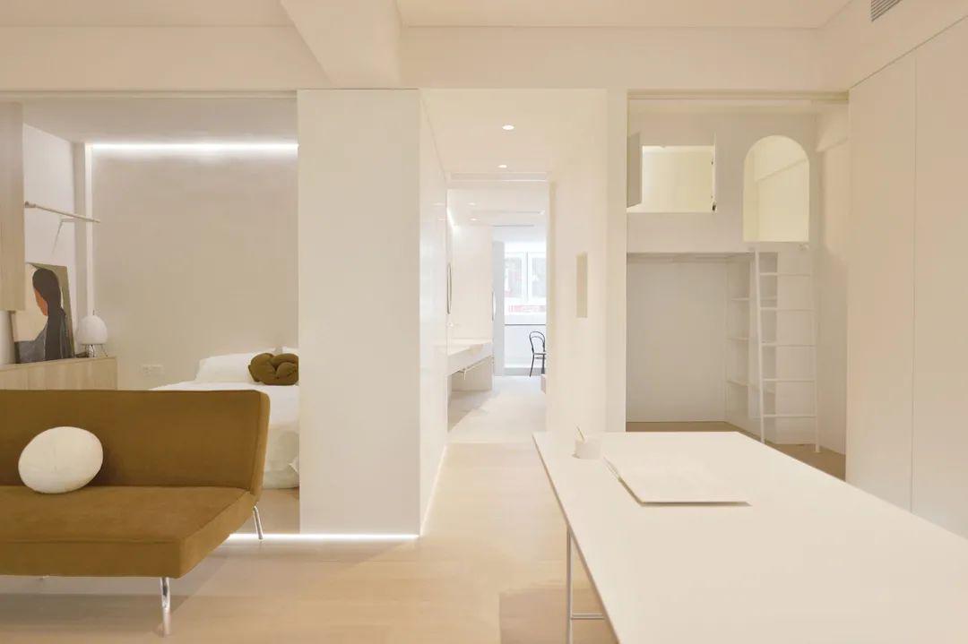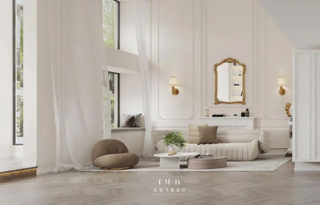 比奶油色深一个度,常和奶白色、浅灰色等一起搭配,柔和又不失张力,空间温柔缱绻。