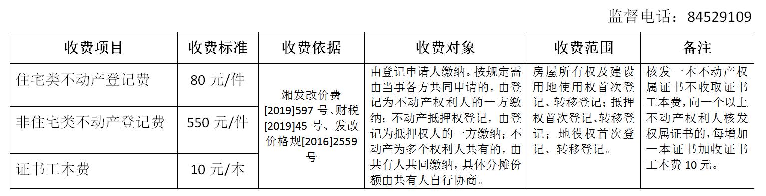 长沙市不动产登记中心收费公示表