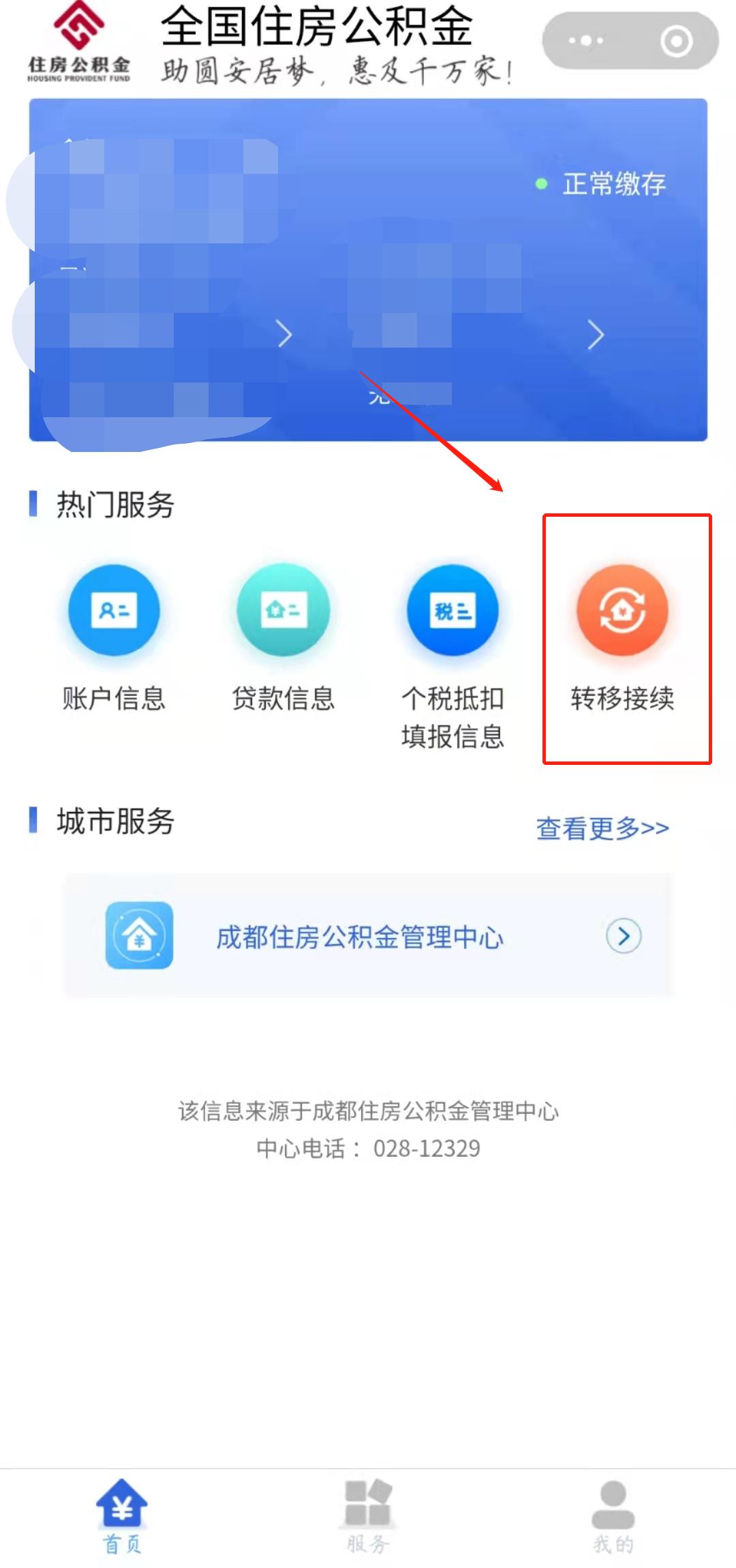 异地转出:进入全国住房公积金小程序后,进行登录,点击【转移接续】即可。