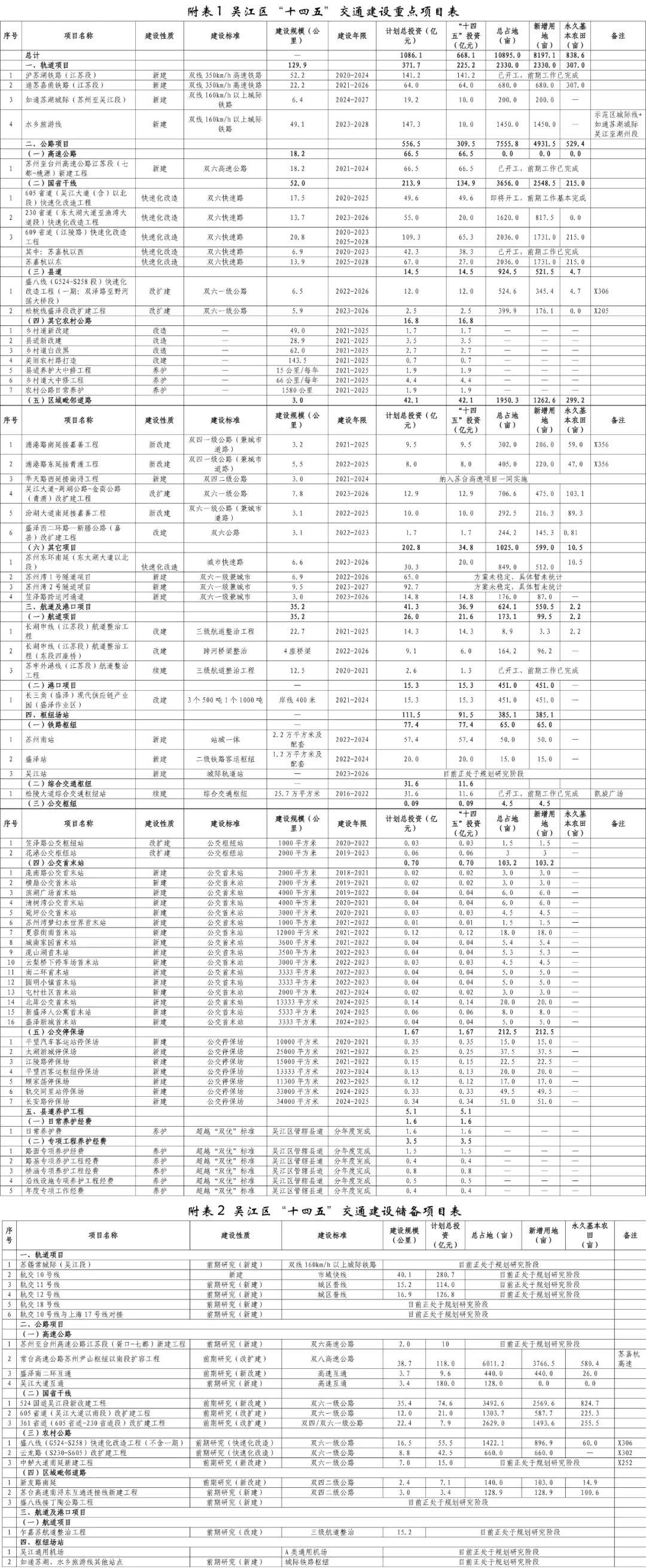 以下为吴江区“十四五”交通建设重点项目表。