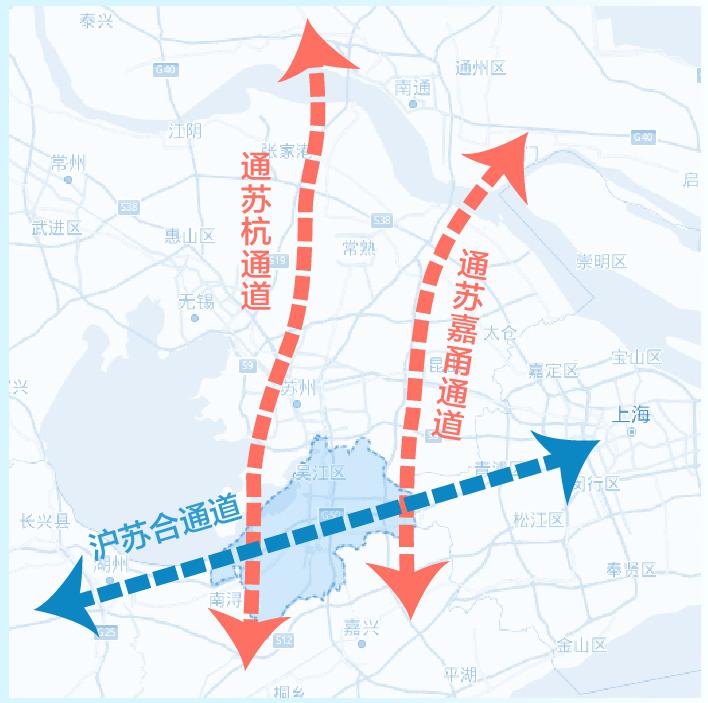 为全面提升综合运输通道设施供给水平,快速融入区域综合运输通道,将推动通苏嘉甬铁路、沪苏湖铁路、如通苏湖城际(苏州至吴江段)“两纵一横”建设,构建铁路+城际+地铁的轨交上吴江。