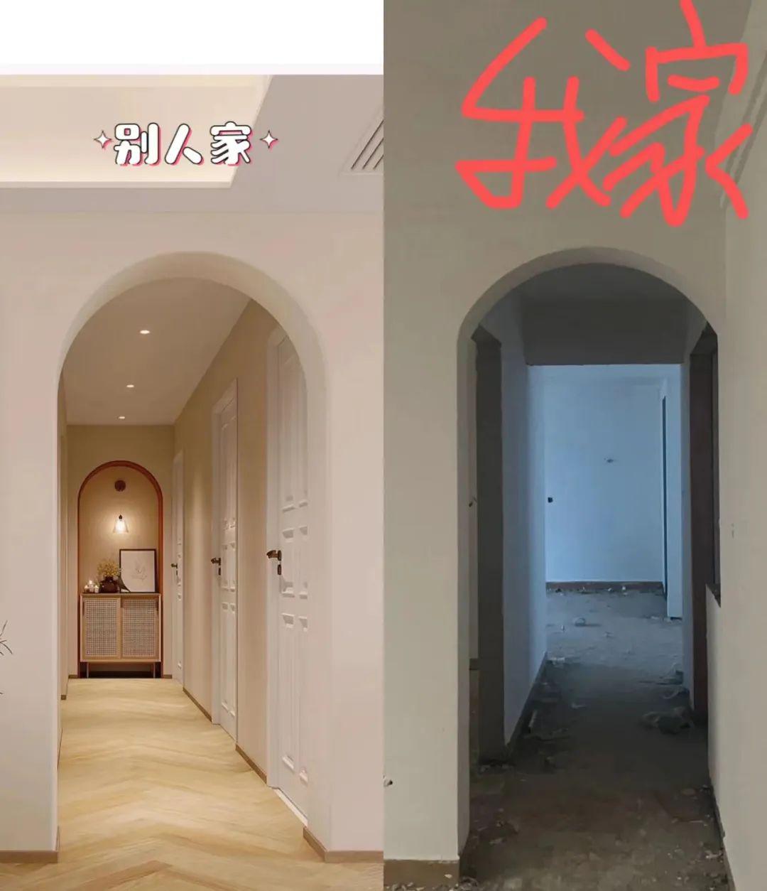 @桑榆:想做奶油风先被拱形门给劝退了,千叮咛万嘱咐木工师傅,做足了功课,修改了两次,还是踩雷了,哭晕在厕所,怎么办怎么办怎么办?