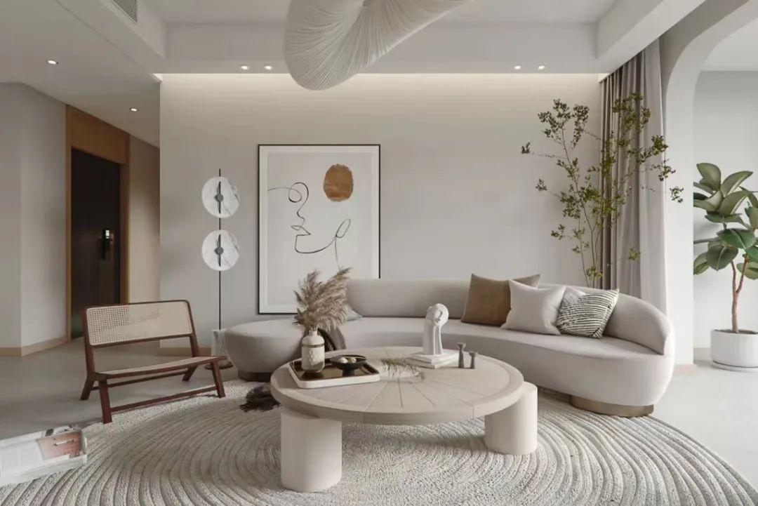 而这种氛围感的打造就要尽最大可能避免直边直角,沙发、餐桌、柜子等家具都尽量选择弧形或圆边的。