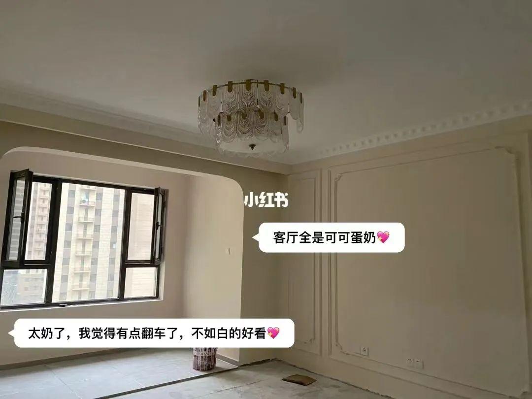 @Danica:从小红书天天刷装修,看到奶油风就自己一直想装!看到最火的颜色莫非可可蛋奶和奶咖了!最后觉得奶咖还是太深了,就果断刷了可可蛋奶!没想到还是翻车了!
