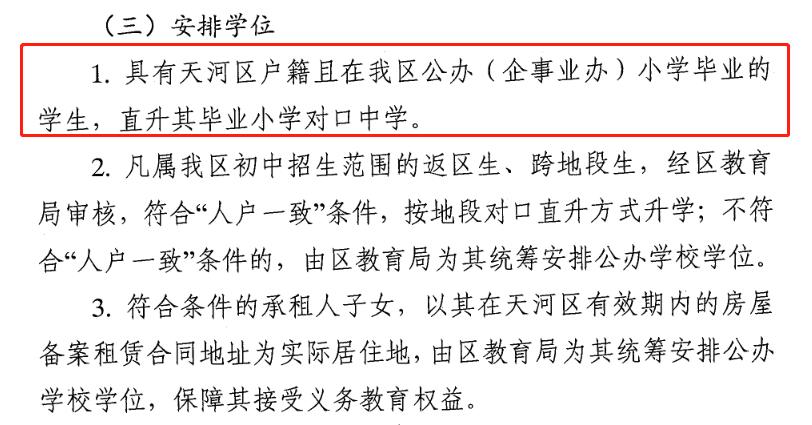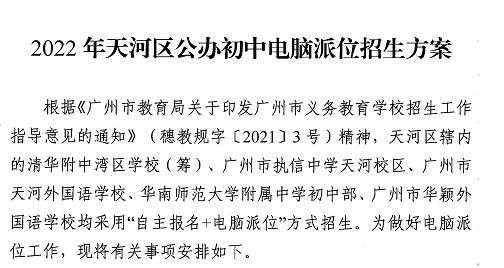 截图自《2022年天河区公办初中电脑派位招生方案》