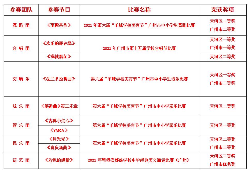 小红绵艺术团由管乐团、弦乐团、交响乐团、舞蹈团、合唱团、语艺团组成,艺术团人数多达400多人,约占学校人数一半。