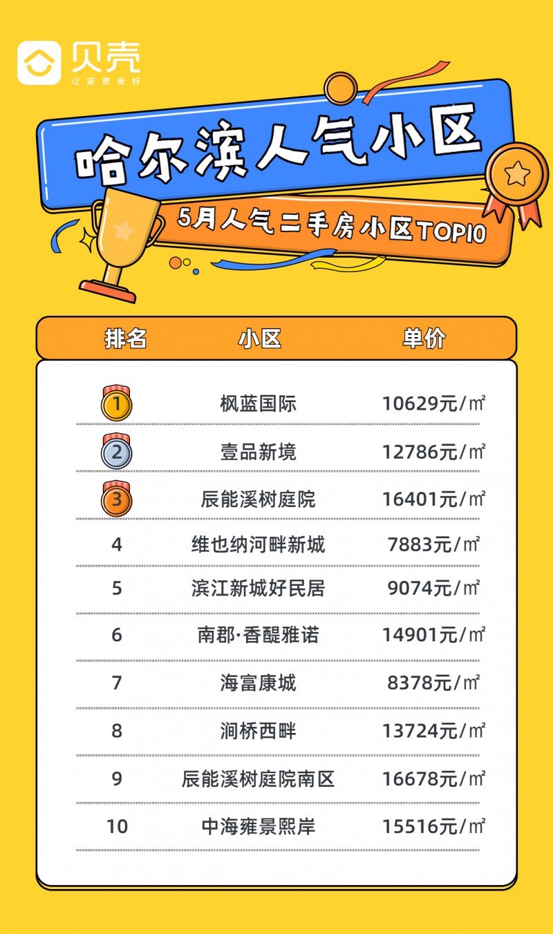 今天小编就为准备买房你带来了哈市人气最高的二手房小区,快来看看有没有符合你的!贝壳研究院数据显示,5月哈尔滨人气小区top10如下,最低小区平均单价7883元/㎡,就能入手大家都在看的好房子哦!