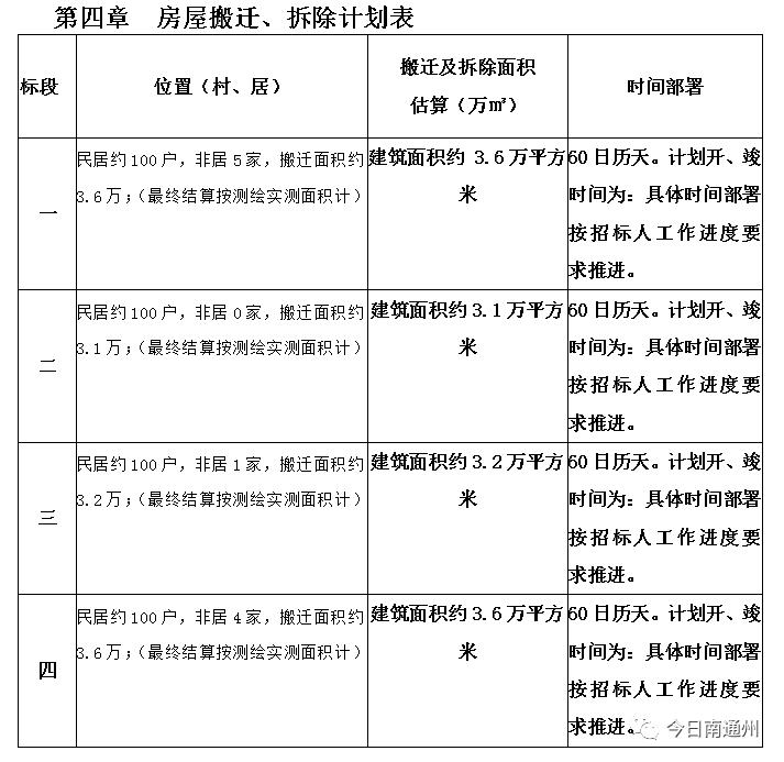 (4)四标涉及民居约100户,非居4家,搬迁面积约3.6万平方米。(最终结算按测绘实测面积计)