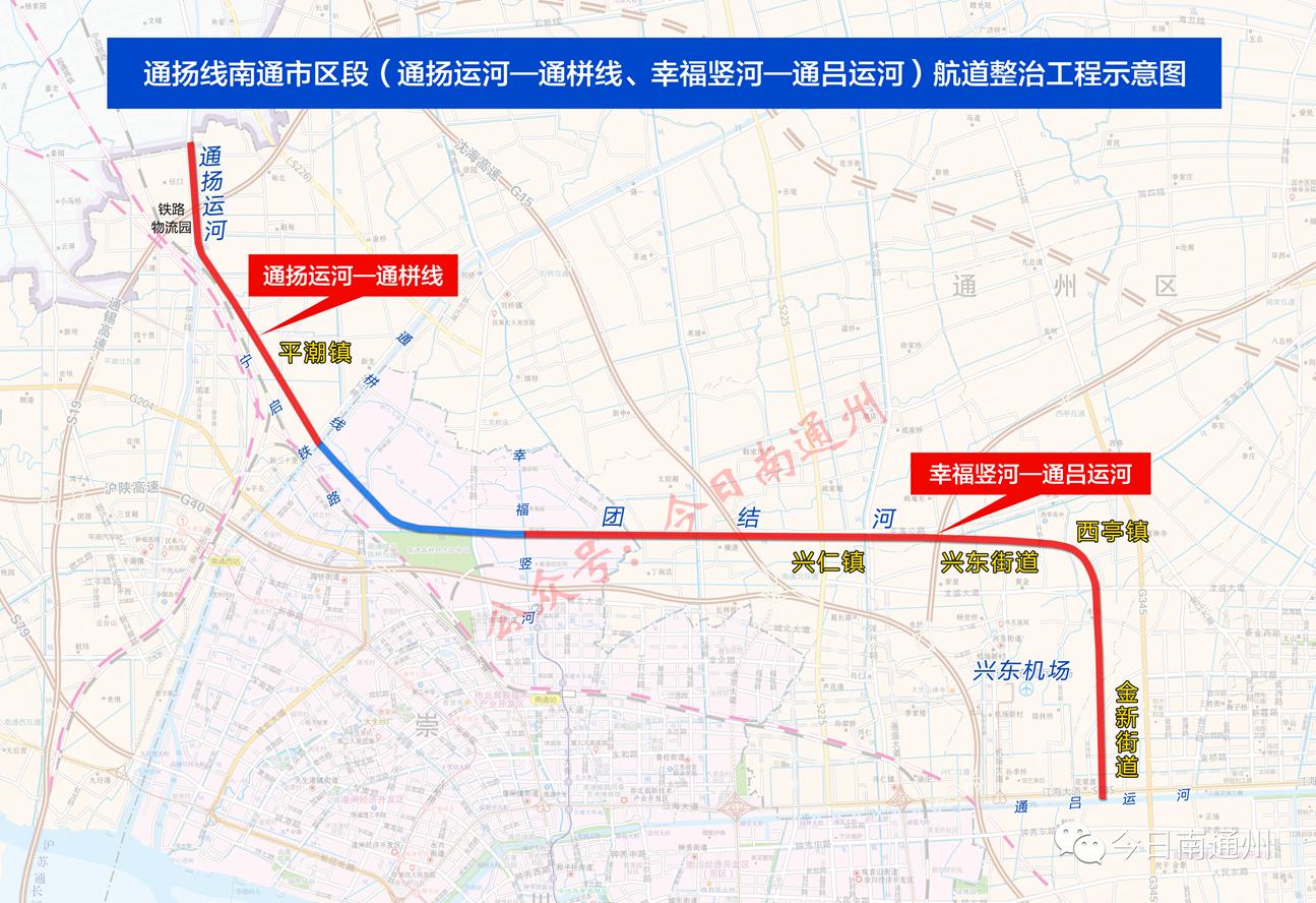 通扬线南通市区段(通扬运河—通栟线、幸福竖河—通吕运河)航道整治工程起于通扬运河如皋通州界,沿通扬运河南下至五七河交汇处,