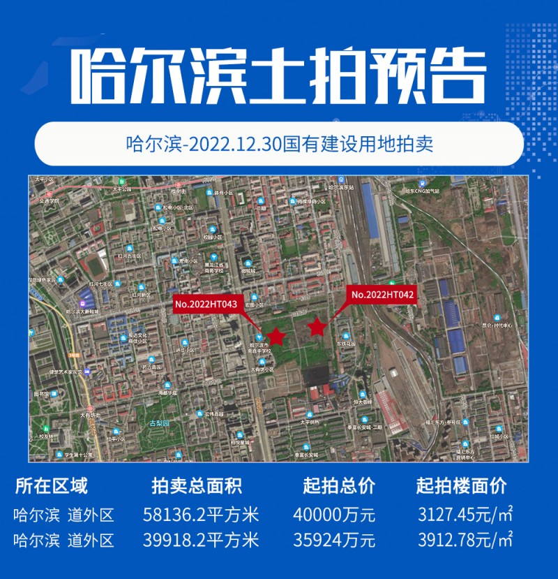 注:稿源:哈尔滨乐居网《土拍预告 | 道外区两宗商住土地挂牌出让,总用地面积约9.8万㎡》