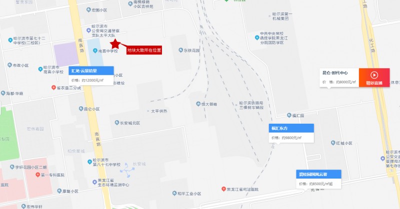 此外,地块距哈尔滨市胸科医院直线距离约900m,距离哈尔滨市第二医院约1km。