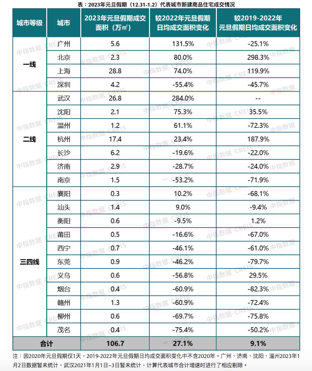 注:稿源:澎湃新闻地产界《元旦假期重点城市新房成交面积同比增超两成》
