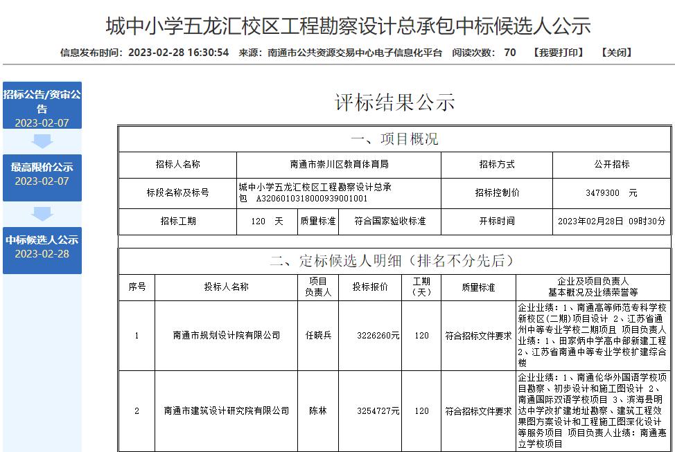 一、本招标项目招标人为南通市崇川区教育体育局、南通市崇川区政府投资项目建设中心。建设资金来自区财政,项目出资比例为100%。项目已具备招标条件,现对城中小学五龙汇校区工程勘察设计总承包进行公开招标,择优选定单位。