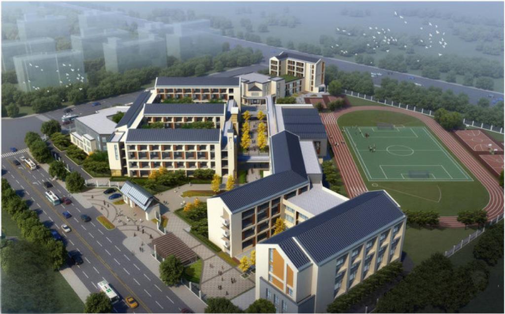 包括教学楼、行政办公楼、综合楼、图文信息楼、食堂及后勤服务楼、体育馆、传达室以及人防地下室等;室外工程包括新建300米环形塑胶跑道运动场、篮排球场、围墙、广场、道路、景观绿化、室外管线等。项目建成后形成办学规模为7轨42班。工程总投资估算为2.4亿元。