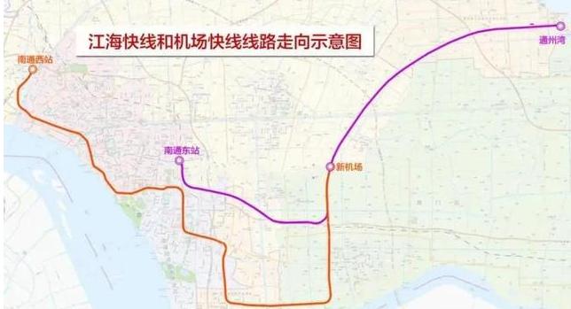 南通东站经新机场至通州湾线(机场快线)起自南通东站,经家纺城、规划新机场后往东终至通州湾,线路全长68千米。