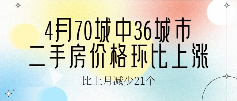 注:稿源:澎湃新闻地产界《4月70城中36个城市二手房价格环比上涨:比上月减少21个》