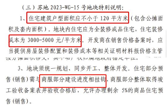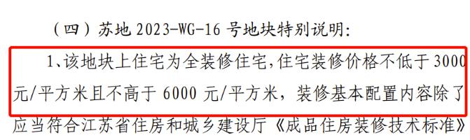 地块要求:装修交付,装标不低于3000元/m²且不高于6000元/m²。