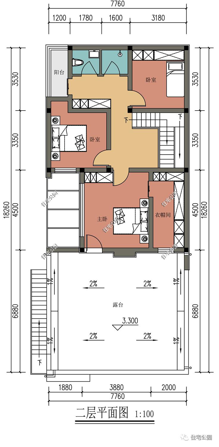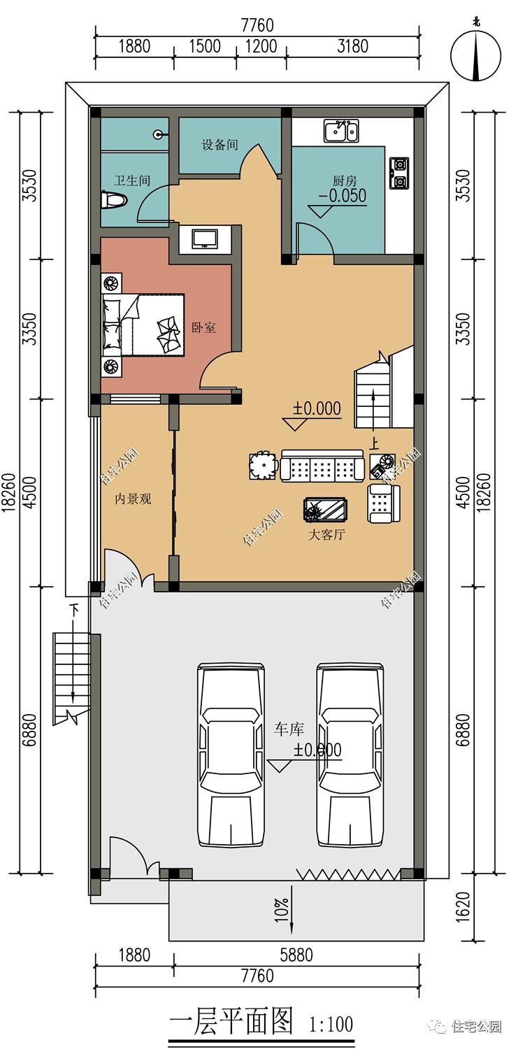 取消确定农村建房,要求颇多,限高要求、采光要求、居住要求等,在一定程度上限制了建房者的想法,只能根据实际情况进行设计,才能建出理想住宅。今天这套户型便是如此,宅基地只有7米宽,并且三面不能开窗。这样的情况属实罕见,如果你家也是这样的情况,那么这套户型图纸,你可一定要仔细看看。户型基本信息占地尺寸:7.76m×18.26m占地面积:141.6㎡建筑面积:232.5㎡建筑高度:6.35m建筑结构:砖混结构建筑情况:1车库 1大客厅 4卧室 2卫生间 1设备间 1衣帽间 1阳台 1大露台【购买方式如下】请添加客服微信进行购买、咨询