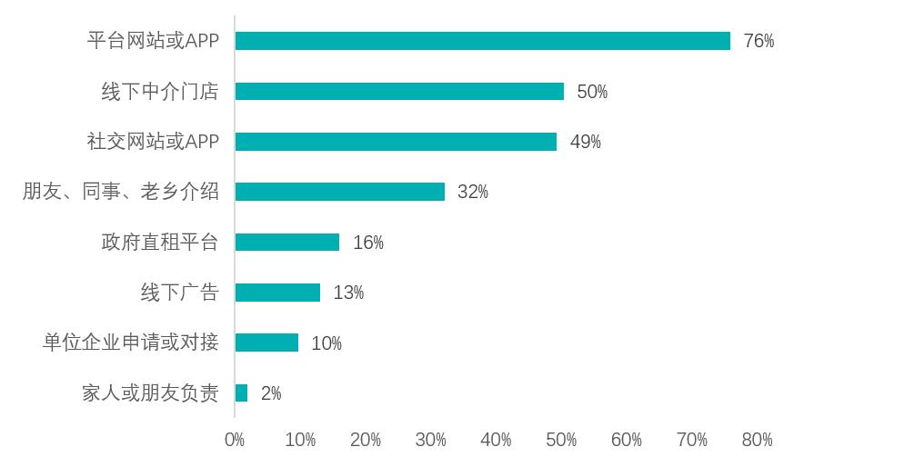 95后青年人成长过程中伴随着网络普及和移动互联网的高速发展,更愿意依托网络获取信息。76%的95后青年人通过平台网站或APP找房(如贝壳找房APP),同时,他们通过微信、微博、豆瓣、小红书等社交网络或APP的比例增长较大,较其他年龄租客提升14个百分比。