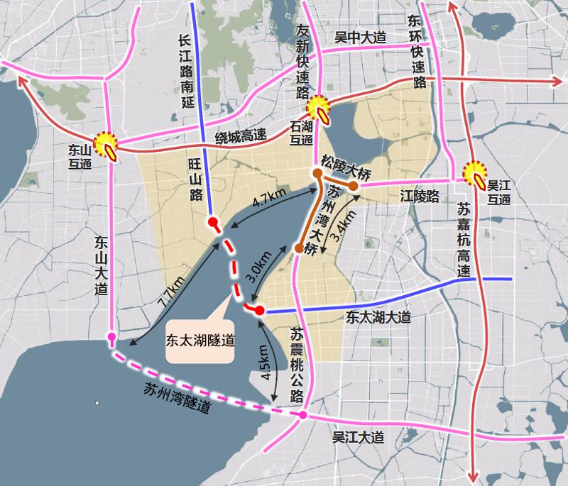 去年,东太湖隧道、苏州湾隧道终于启动建设,实现“跨湾发展”。