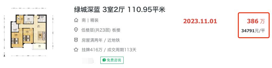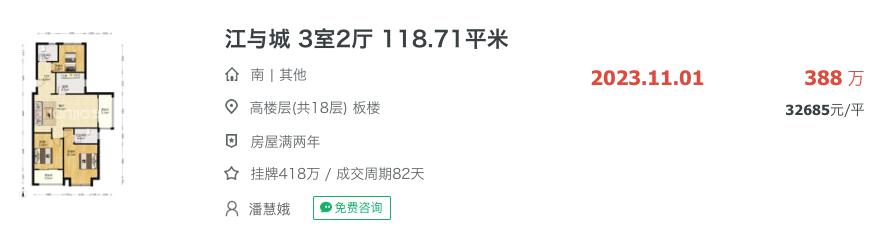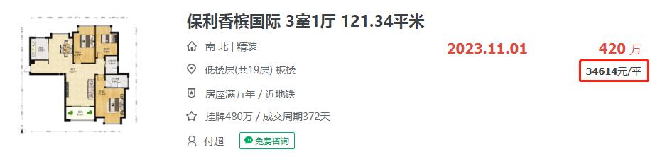 时隔3年多,业主以3.4万/㎡的价格卖房,成交单价直接下降3.8万/㎡!堪称割肉卖房!