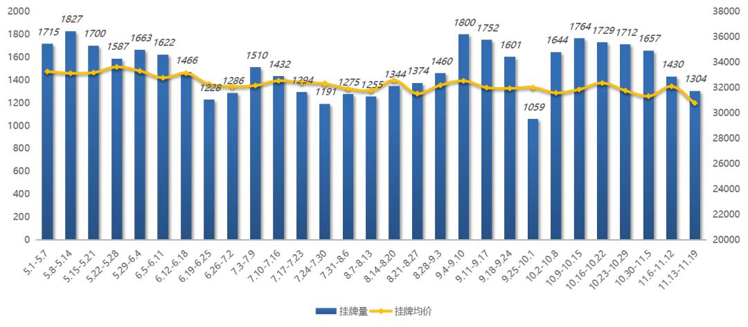 与此同时,挂牌均价也进一步走低,上周新增房源挂牌均价跌破3.1万/㎡。