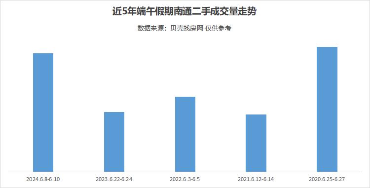 根据贝壳找房网数据显示,2024年端午假期(6.8-6.10)二手房成交量较去年端午假期上涨97%。2024年端午假期二手成交热度远超去年,总体成交量为近五年来的次高峰。