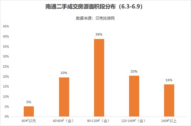 从成交结构来看,呈现刚改为主、高改为辅的特点。本周(6.3-6.9)三居室依旧是最受青睐的户型,其中,面积在90-120㎡(含)之间的二手房最多,占比约39%。