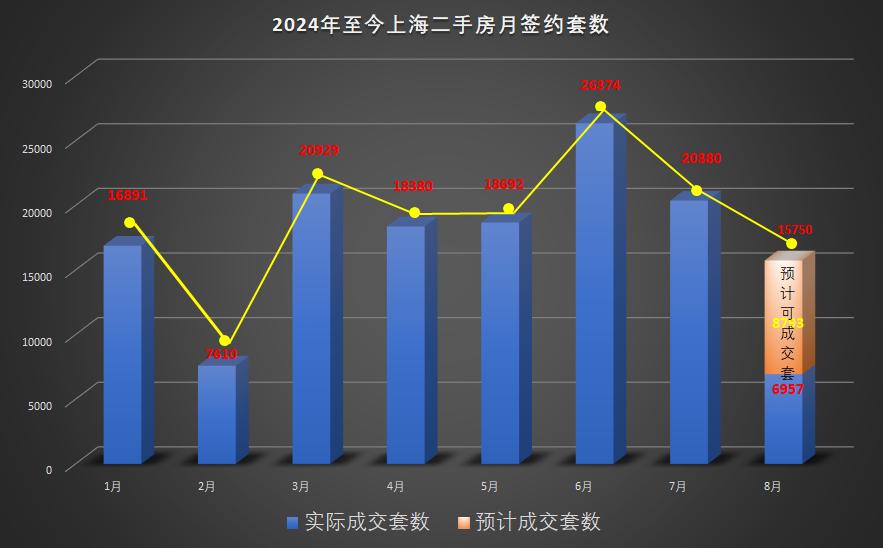 13天时间里,套均成交量在525套/日,以此类推下去,月成交量预计在15750套左右,同比7月份减少约4630套,月成交量下跌22.7%;同比6月份减少约10624套,月成交量下跌40.3%;