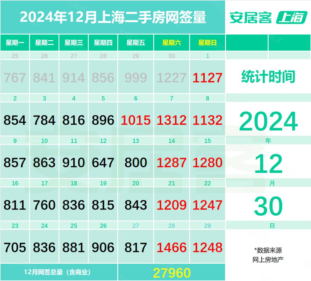 根据网上房地产数据统计,截至12月29日,单月上海二手房(含商业)的网签成交已超过2.7万套,达27960套,环比上涨了8.3%。这也是自“9·29新政”后,上海二手房月成交量连续上涨的第三个月。业内预判,12月,上海二手房(含商业)成交量有望冲破3万套,将成为年内成交量最高的一个月及近3年来成交量新高。